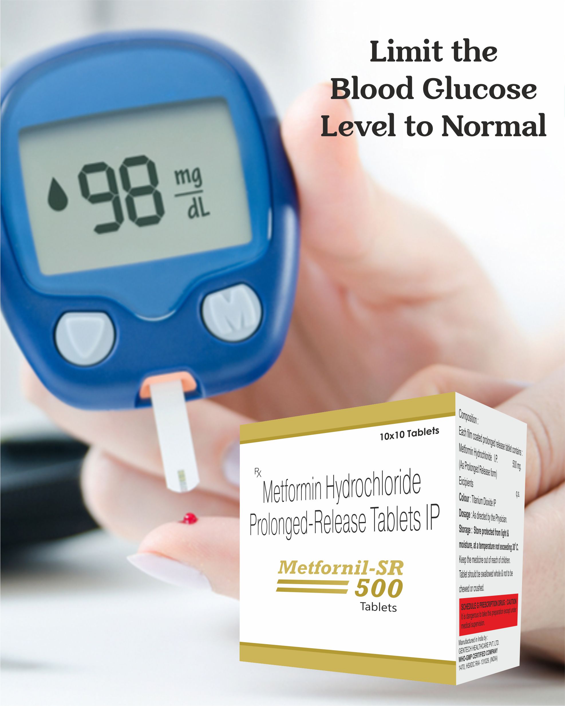 Metformin Hydrochloride I.P. 500 mg.